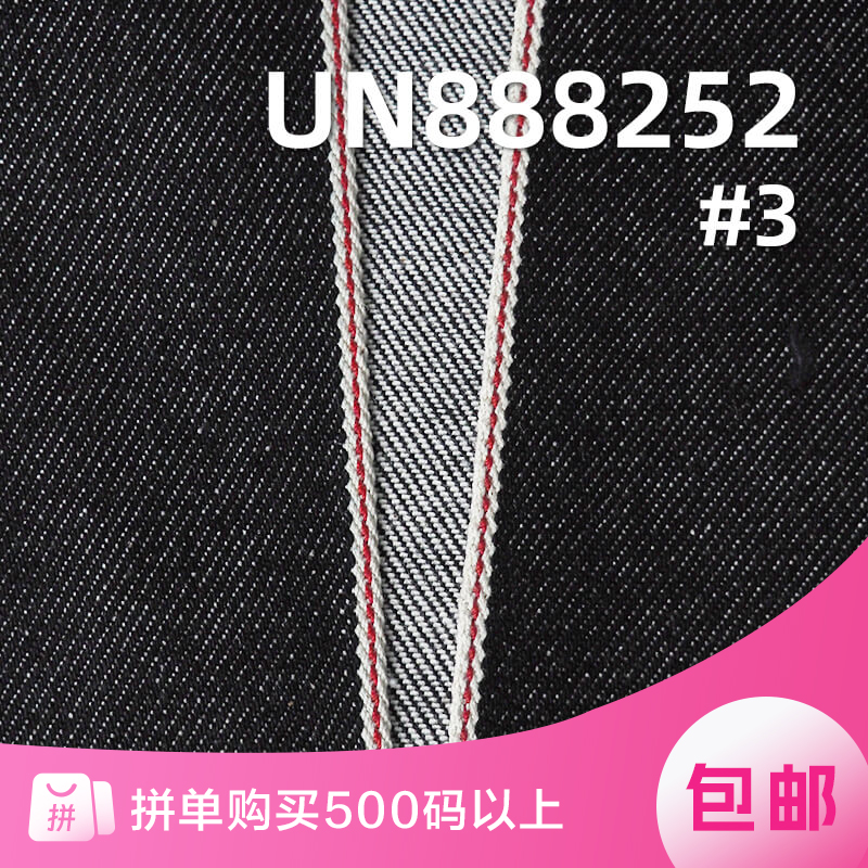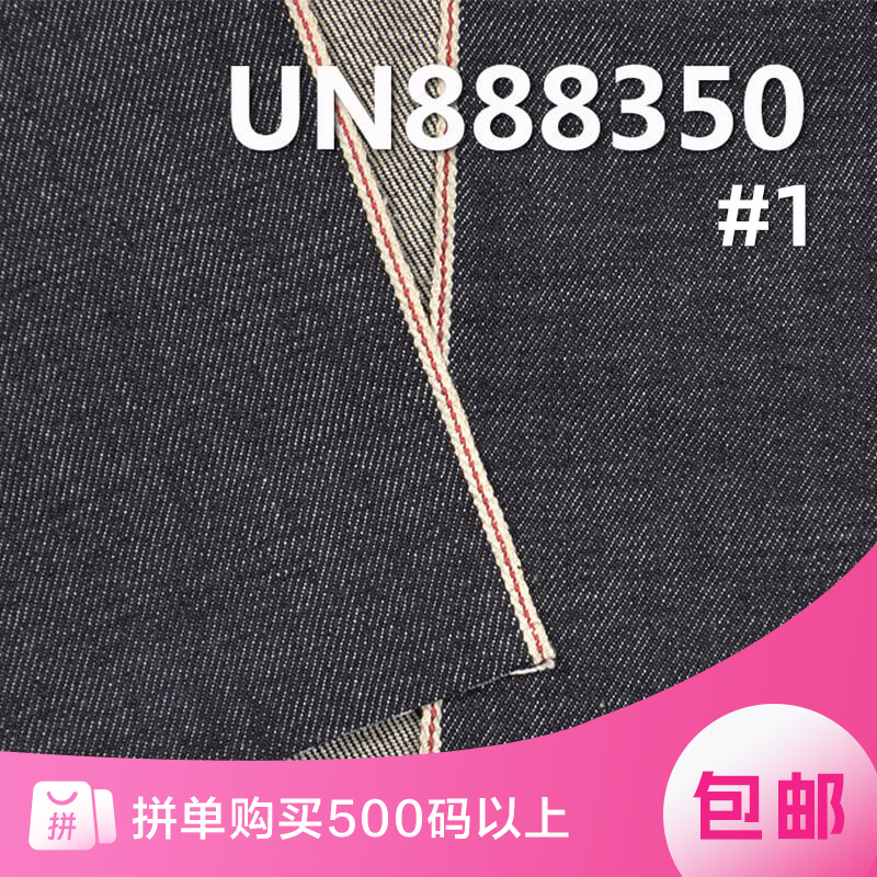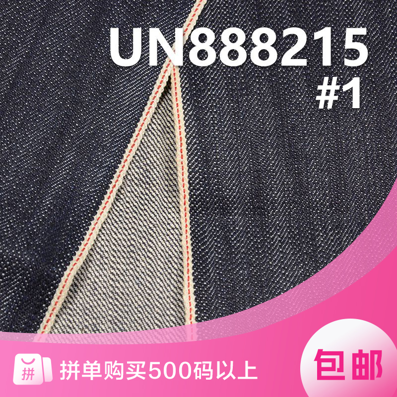 它是一款100%棉,重量为 14.1安士(oz)、幅宽为 58/59" 的牛仔布料,主要工艺是“四片右斜+全棉竹节牛仔”,货号为 UN881027;