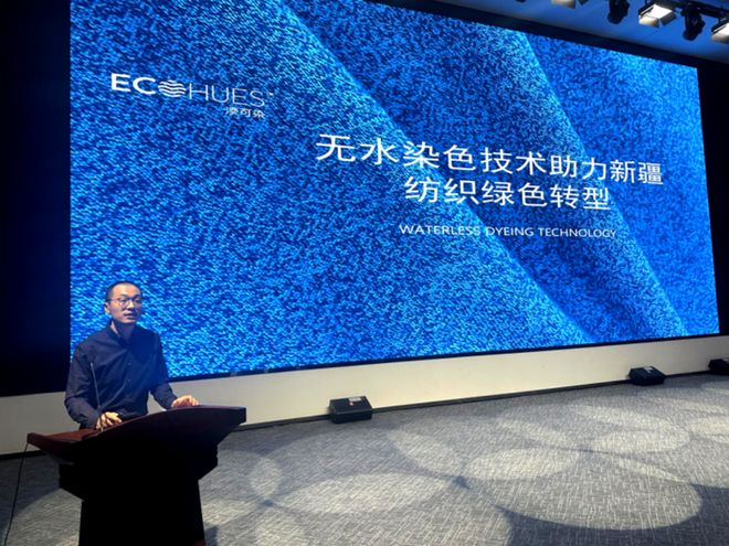 当前,全球正面临人均可再生水资源短缺的压力,纺织印染作为高废水排放行业,技术创新迫在眉睫。新疆受生态环境条件制约,对高效能、低污染的染色技术有着更为迫切的需求,广东溢维环境科技有限公司无水染色技术负责人陈玉洪阐述了“无水染色技术助力新疆纺织绿色转型”方案,为新疆纺织企业提供了绿色印染新思路。据介绍,湙可染™以非水溶剂为介质,实现纤维素纤维工业化染色,相较传统工艺全工序节水95%、染料节省40%,固色率提升至97%。