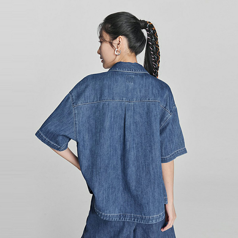 细节处理上,LEE品牌同样展现了其对于品质的执着追求。衬衫的口袋、纽扣、领口等部位都采用了与主体面料相匹配的全棉不规则平卡(丝光)牛仔布,使得整个衬衫在视觉上更加和谐统一。同时,品牌还注重细节的精致处理,如领口和袖口的包边工艺、纽扣的精心挑选等,都为衬衫增添了一份别样的魅力。除了外观上的优势,全棉不规则平卡(丝光)牛仔布还赋予了LEE女短袖牛仔衬衫出色的耐用性。这种面料经过特殊处理,具有优异的耐磨性和抗皱性,能够经受住时间的考验。即使经过多次穿着和洗涤,衬衫依然能够保持原有的形状和质感,让人感受到品质的保证。