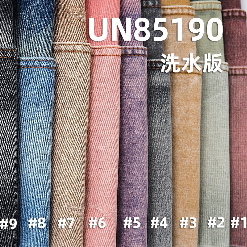彩色牛仔布的染色过程,是一项复杂而精细的艺术。它要求在保证面料原有质感的同时,实现色彩的均匀分布与持久保持。这背后,离不开先进的染色设备与环保的染料选择。通过精确的温控与化学处理,使得色彩能够深入纤维内部,即使在多次洗涤后,依然能保持鲜艳如初。此外,彩色牛仔布还注重环保与可持续性,许多品牌选择使用植物染料或回收材料,以减少对环境的影响,让时尚与自然和谐共生。正如 UN85190 彩色牛仔布,它含有11%再生纤维素纤维,面料柔软舒适,优质高端,色彩鲜明时尚,是创作时尚单品的理想之选。