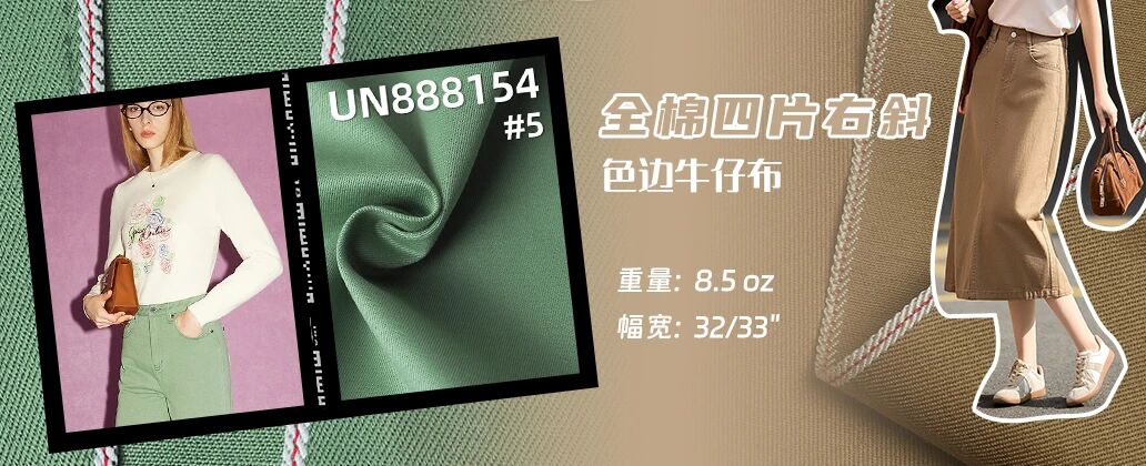 UN888154 全棉牛仔布:牛仔面料的“实力担当” 在介绍单品之前,我们来介绍一下它的面料——UN888154 全棉牛仔布,那可是牛仔面料界的“实力担当”。它是一款 100%棉的牛仔布料,重量为 8.5oz(#7 蓝牛红白边为 9.2oz)、幅宽为 31/32",独特的设计让它在一众牛仔布中脱颖而出。主要工艺采用“全棉 + 红边”的组合,这种工艺不仅保留了全棉面料的天然舒适感,还巧妙地融入了经典红边元素,瞬间提升了布料的时尚感。