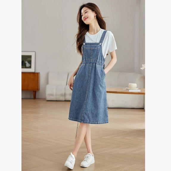 全棉牛仔打造让这款连衣裙在穿着时更加舒适自在。在不同的场合,它都能发挥出独特的魅力。日常出行时,搭配一双小白鞋,清新又自然;参加一些轻松的聚会时,换上一双精致的凉鞋,瞬间提升时尚感,让你成为人群中的焦点。