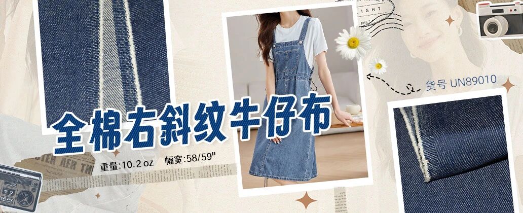 宝藏级牛仔面料:全棉斜纹牛仔布UN89010 全棉斜纹牛仔布UN89010,是一款100%棉、重量为10.2安士(oz)、幅宽为58/59"的牛仔布料。它采用了“四片右斜+全棉牛仔”的主要工艺,使得布料纹理清晰、手感柔软,同时具有良好的透气性和舒适度。这款牛仔布精选优质全棉面料,经过精细的工艺处理,触感柔软,带来舒适的穿着体验。无论是男款牛仔衬衫的宽松潮流、女款牛仔衬衫的精致气质,还是牛仔背带裙的元气减龄,都离不开这款全棉斜纹牛仔布UN89010的加持。