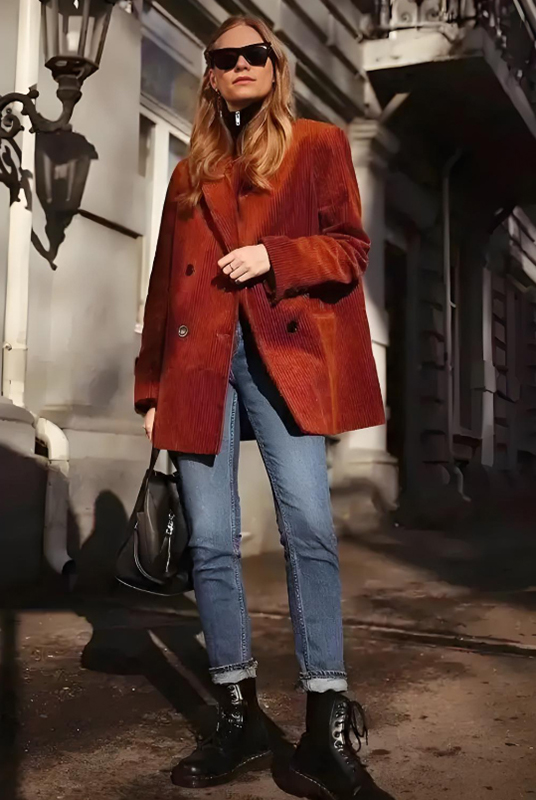 灯芯绒的走红从不是偶然,而是质感与温度的双重胜利。它标志性的绒条结构不仅自带视觉层次感,更能形成天然的保暖层,比毛呢更柔软,比针织更挺括。
