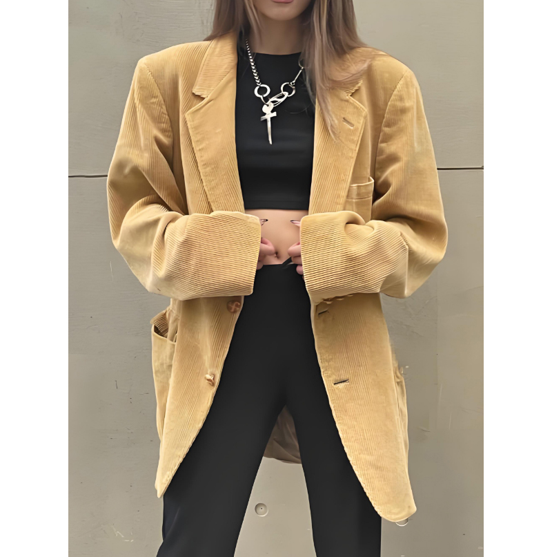秀场同款的微阔 H 型灯芯绒西装,绝对是进阶玩家的首选,焦糖棕面料自带高级滤镜。