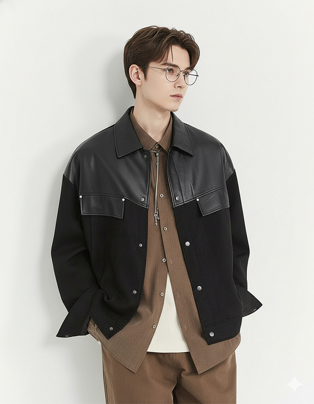 时尚圈最火的 “软硬碰撞” 玩法,用它就能轻松实现:与皮革拼接做工装夹克,衣身用加厚工装棉布保证透气舒适,穿上就是美式复古电影里的潮人主角。