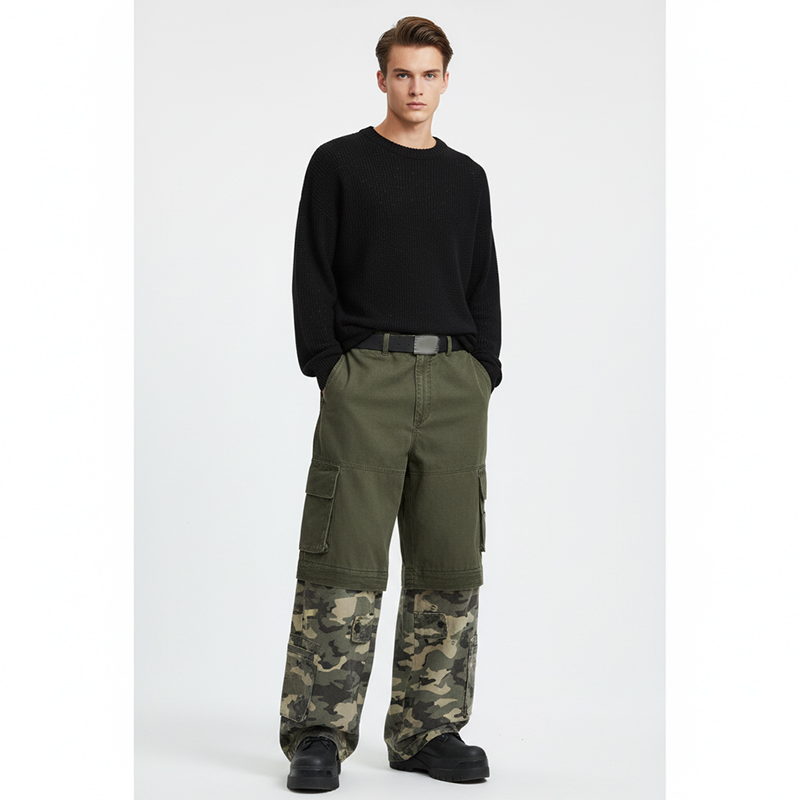 街头潮人实测,用它拼接的工装裤,有足够的挺括度修饰腿型,拼接潮到爆的迷彩裤腿,潮到心坎上。