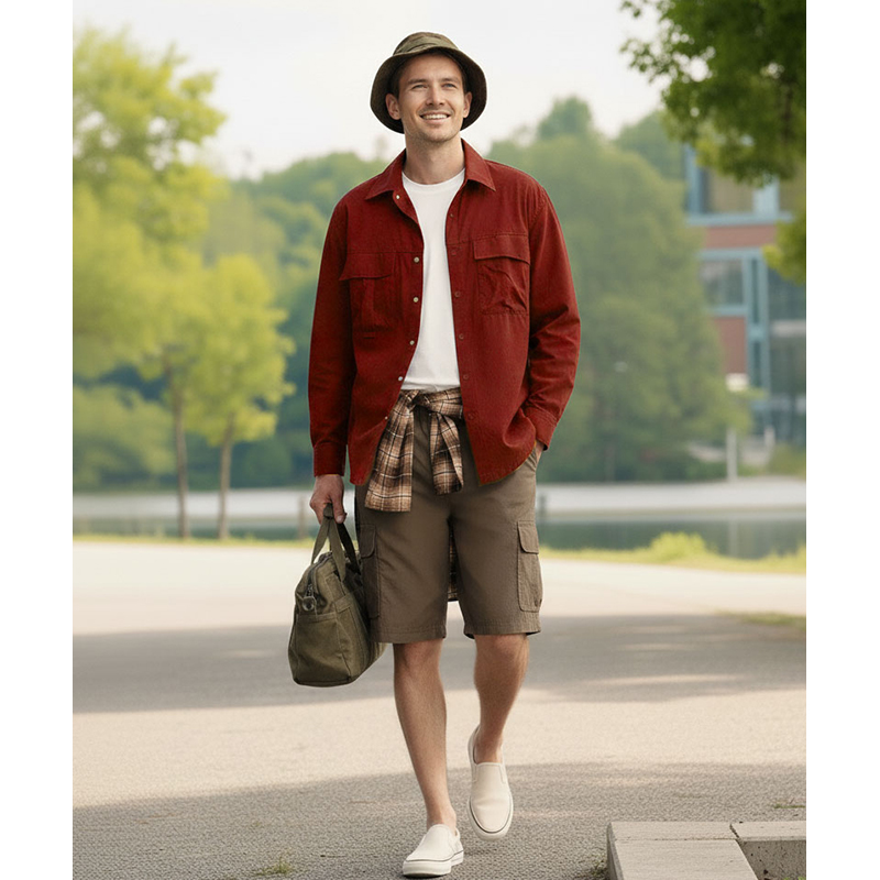 想要轻松拿捏工装风,掌握简单搭配逻辑即可。基础款搭配是新手入门的绝佳选择:男女通用的卡其色工装裤,搭配纯色 T 或基础款卫衣,简约却不单调。