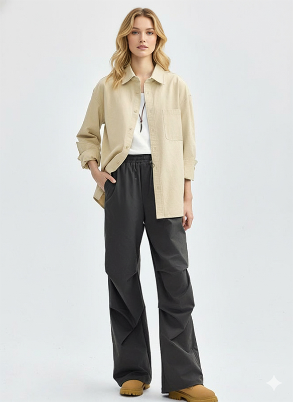 工装风的 “不费力”,藏在其天生的实用性与百搭属性里。经典的宽松廓形对所有身材都极度友好,无需精心搭配就自带时尚感。