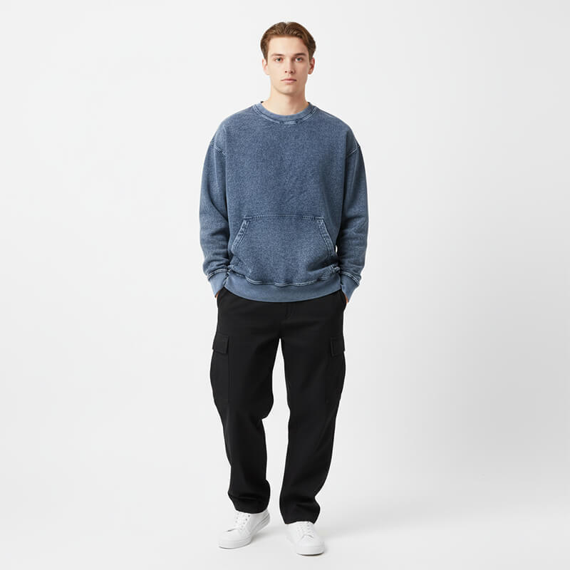 靛蓝针织牛仔布|318g/m2(9.4oz)棉弹力针织拉架|牛仔蓝斜纹卫衣布|弹力牛仔裤 牛仔卫衣 外套面料