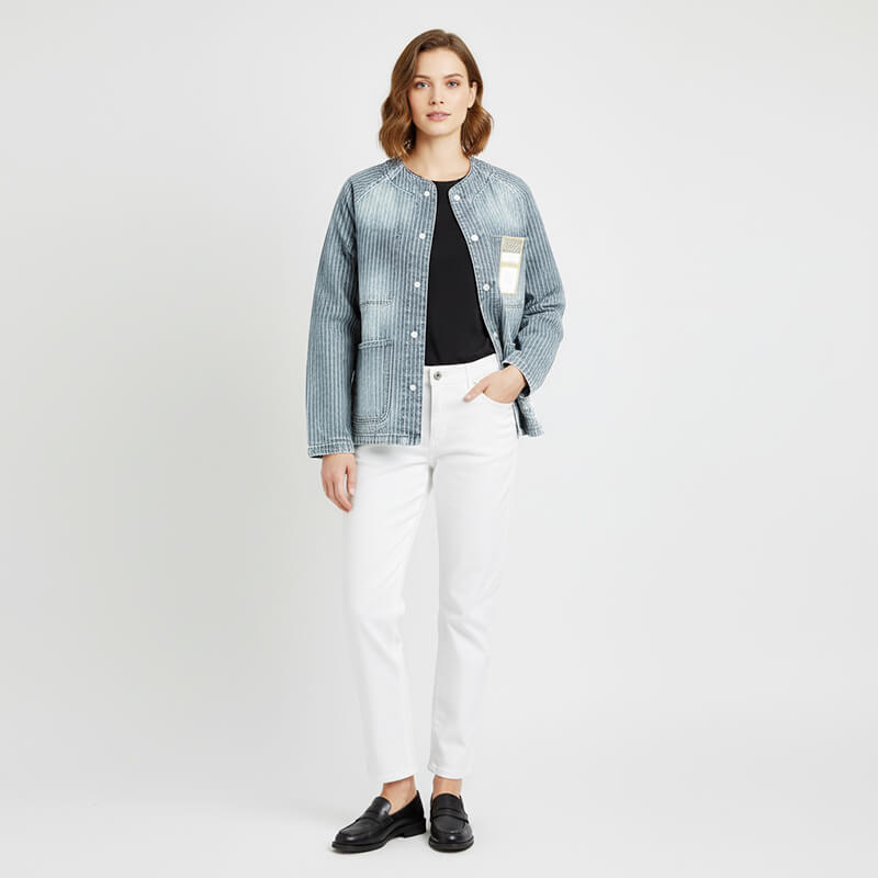 蓝白条子牛仔|9.8安士(oz)无弹三片右斜牛仔布|条子牛仔布|含再生纤维|牛仔裤 休闲外套面料