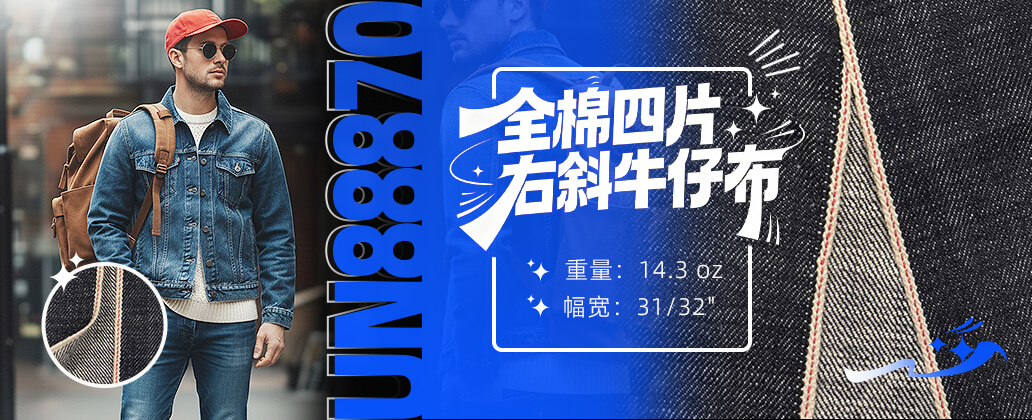 全棉牛仔布|13.3安士竹节棉四片右斜牛仔布|牛仔裤 潮牌牛仔夹克外套面料