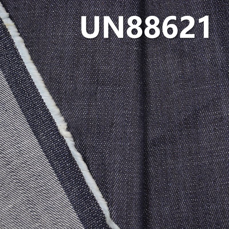 它是一款99%棉1%氨纶,重量为10安士(oz)、幅宽为55/56"的牛仔布料,主要工艺是“丝光牛仔+棉弹力”,货号为UN88621;
