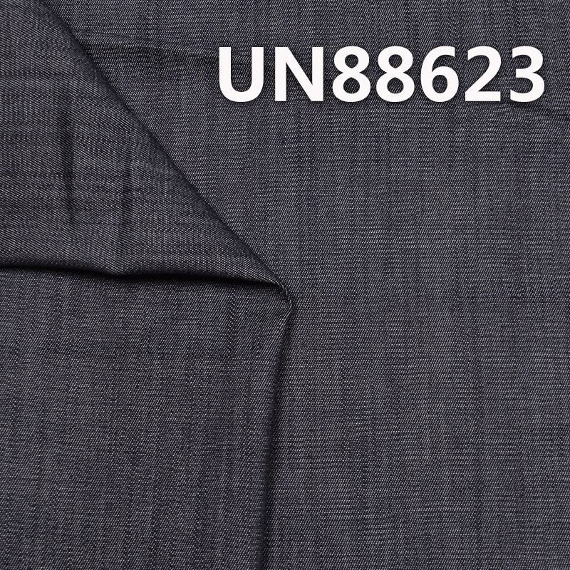它是一款98%棉2%氨纶,重量为5.5oz、幅宽为52/54"的春夏薄款牛仔布料,主要工艺是“棉弹力+竹节”,货号为UN88623;