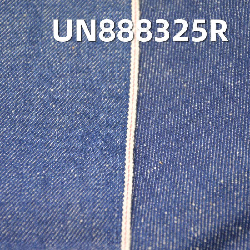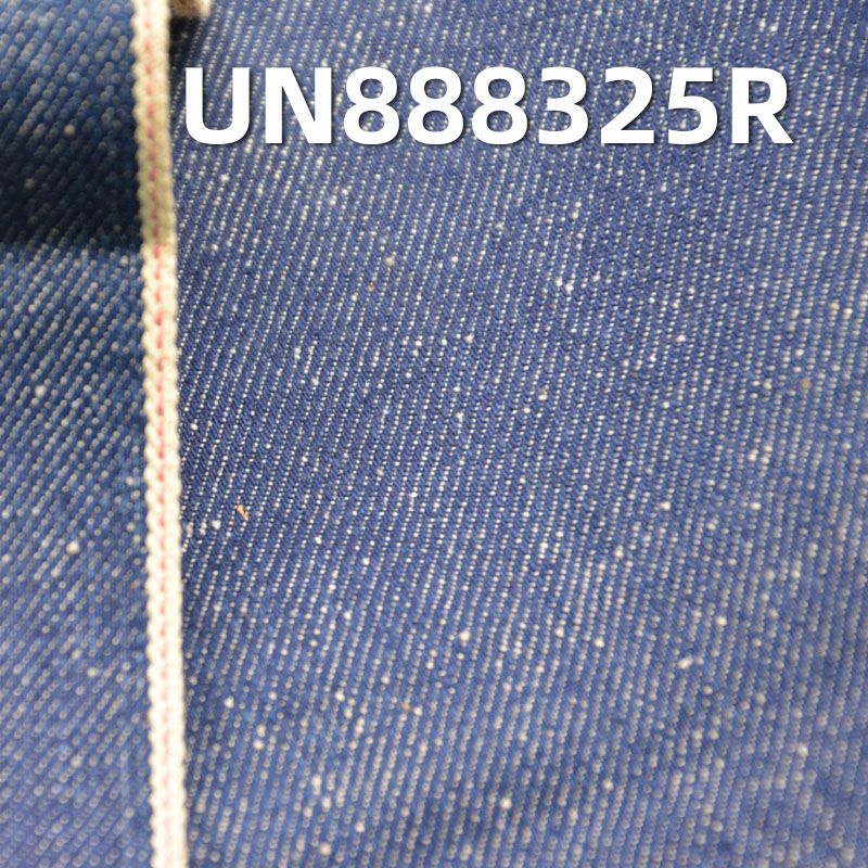 它是一款100%棉,重量为10.7安士(oz)、幅宽为32/33"的牛仔布料,主要工艺是“全棉+红边牛仔布”,货号为UN888325R;