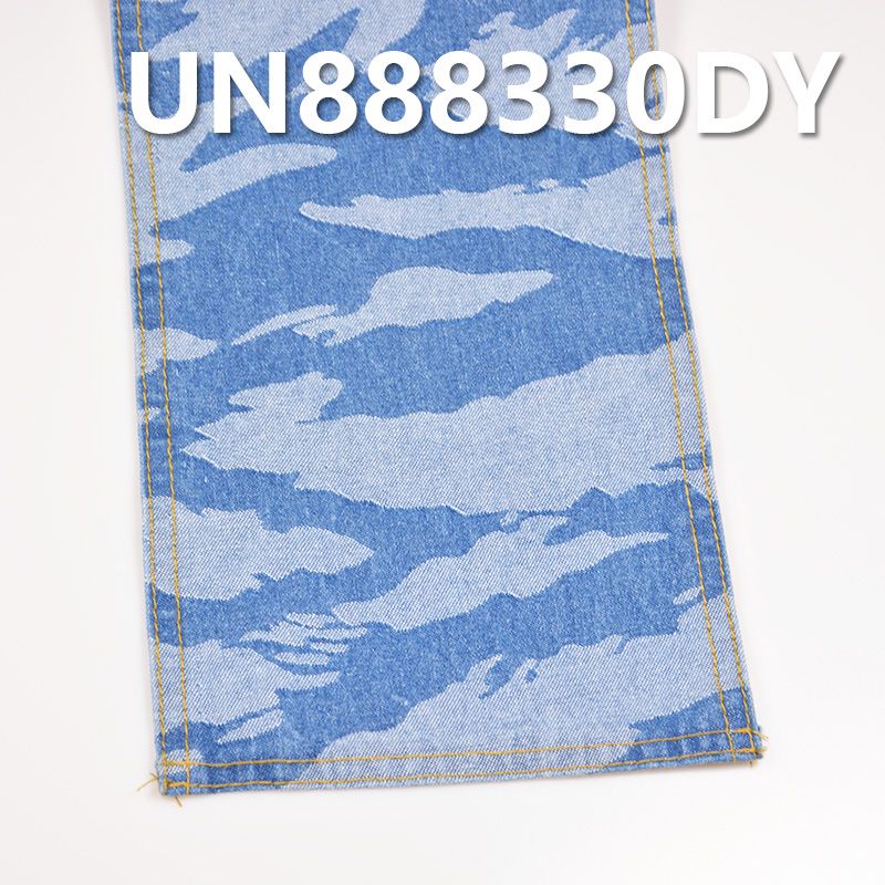 它是一款100%棉,重量为11oz、幅宽为31/32"的牛仔布料,主要工艺是“全棉牛仔+大提花”,货号为UN888330DY;