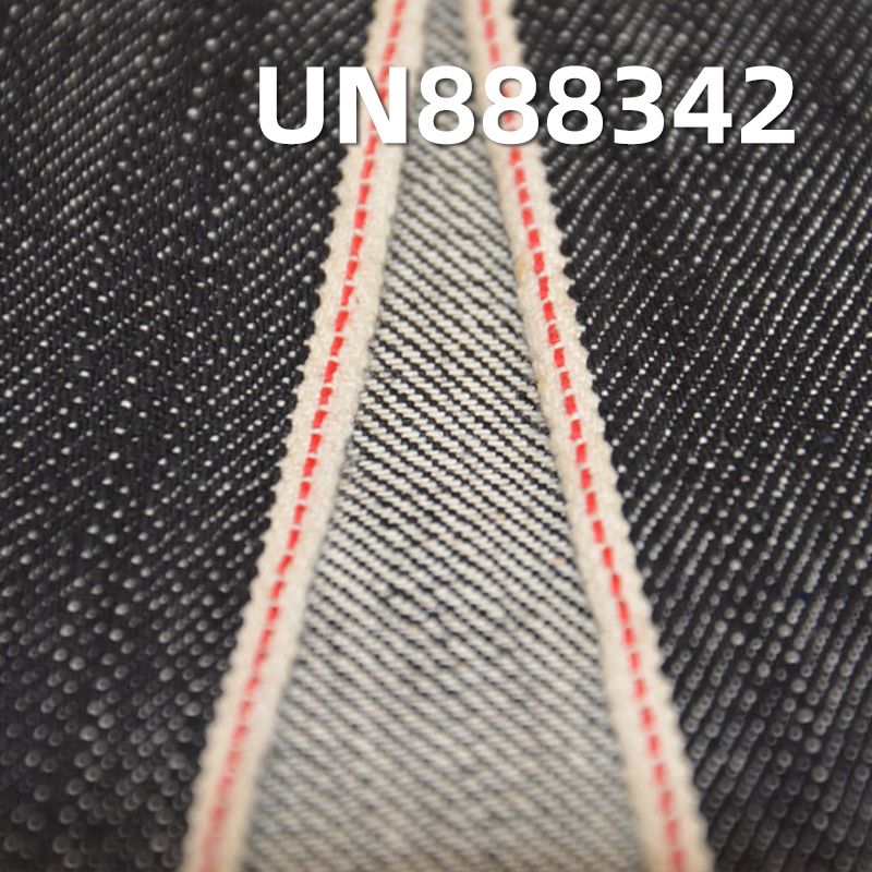 它是一款100%棉,重量为13安士(oz)、幅宽为32/33"的牛仔布料,主要工艺是“全棉+红边牛仔布”,货号为UN888342;