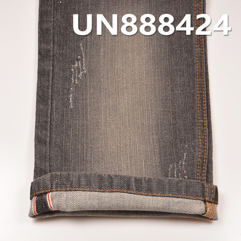 它是一款99%棉1%氨纶,重量为11.5安士(oz)、幅宽为31/33"的牛仔布料,主要工艺是“棉弹力+红边牛仔布”,货号为UN888424;