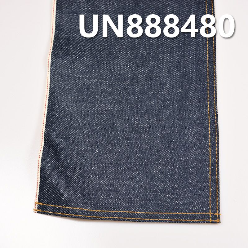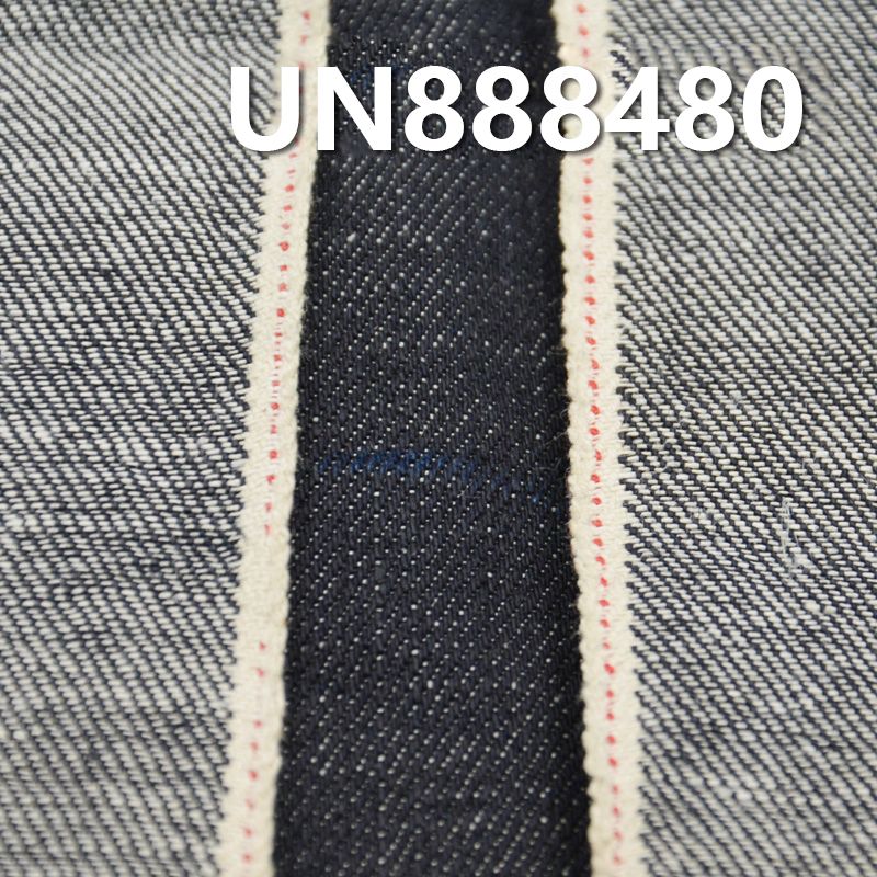 它是一34.5%亚麻,65.5%棉,重量为11.5安士(oz)、幅宽为32/33"的牛仔布料,主要工艺是“棉亚麻+红边牛仔”,货号为UN888480;