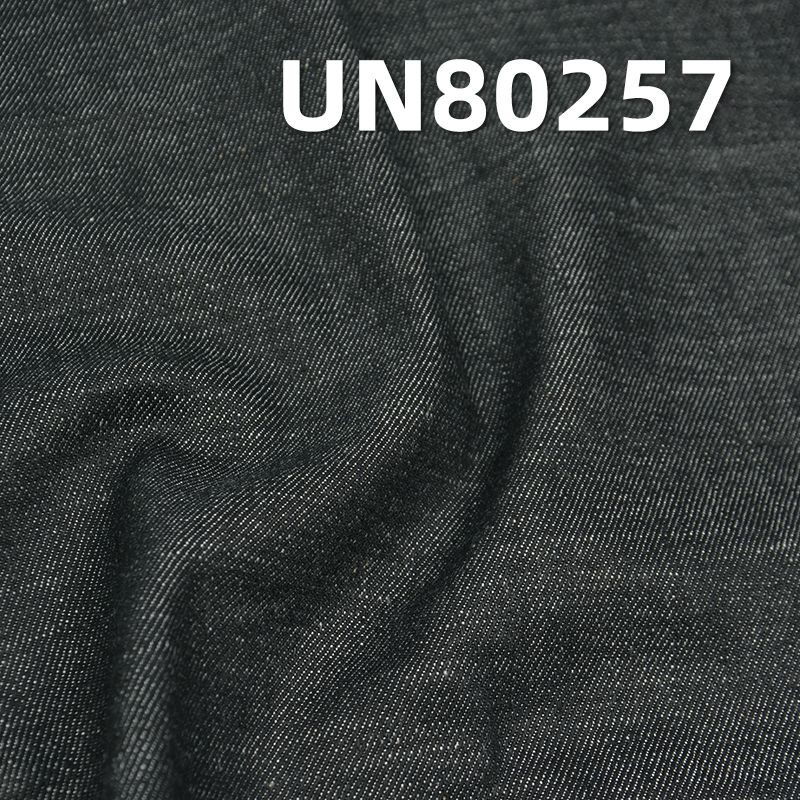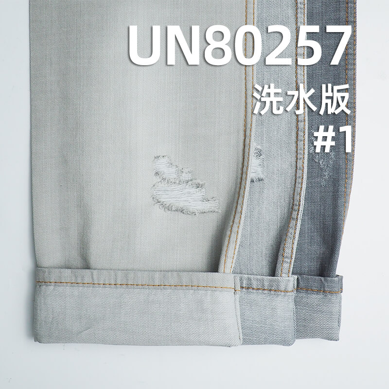 它是一款100%棉,重量为 10.6安士(oz)、幅宽为 58/59" 的牛仔布料,主要工艺是“全棉牛仔+竹节”,货号为 UN80257;