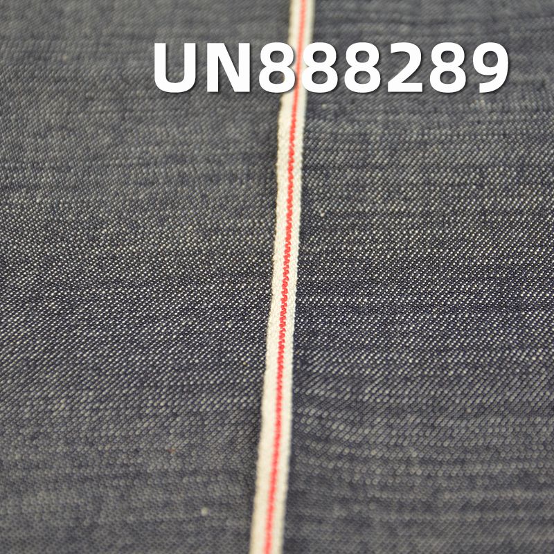 它是一款100%棉,重量为6安士(oz)、幅宽为 34/35"的牛仔布料,主要工艺是“全棉竹节+三片右斜”,货号为 UN888289;