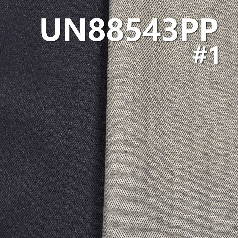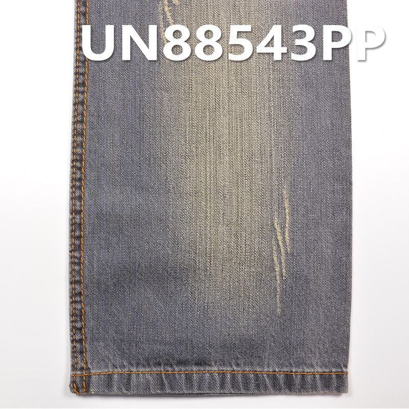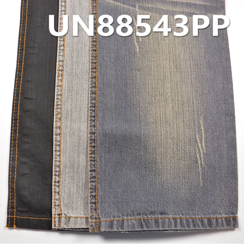 它是一款100%棉,重量为6.5安士(oz)、幅宽为58/59"的牛仔布料,主要工艺是“全棉牛仔+竹节”,货号为UN88543PP;