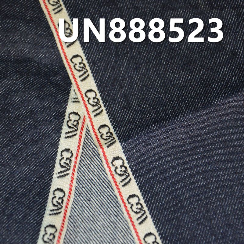 它是一款100%棉,重量为13.5oz、幅宽为32/33"的牛仔布料,主要工艺是“全棉牛仔+红边”,货号为UN888523;