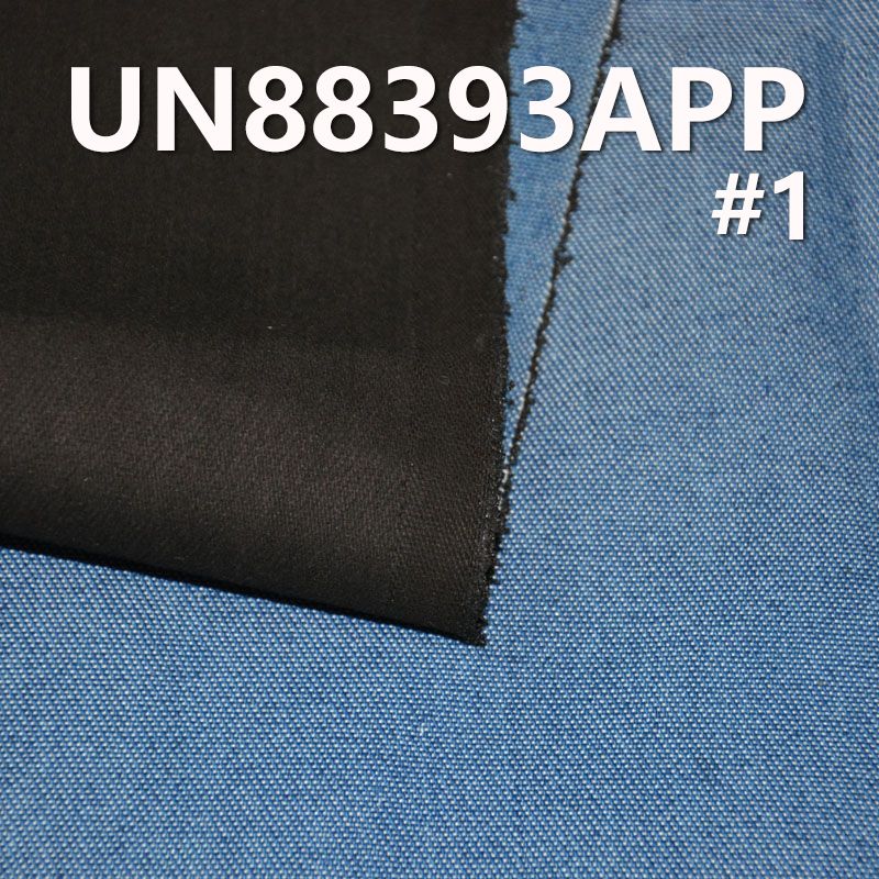 它是一款80%棉 20%涤纶,重量为8.8安(oz)、幅宽为59/60"的牛仔布料,主要工艺是“丝光牛仔+竹节”,货号为UN88393APP;