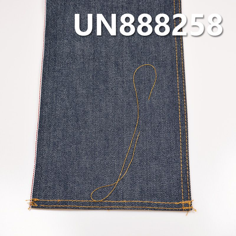 它是一款100%棉,重量为12.7oz、幅宽为32/33"的牛仔布料,主要工艺是“红边牛仔+竹节棉”,货号为 UN888258;