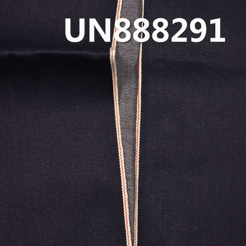 它是一款100%棉,重量为8安士(oz)、幅宽为34/35" 的牛仔布料,主要工艺是“全棉+红边牛仔布”,货号为 UN888291;