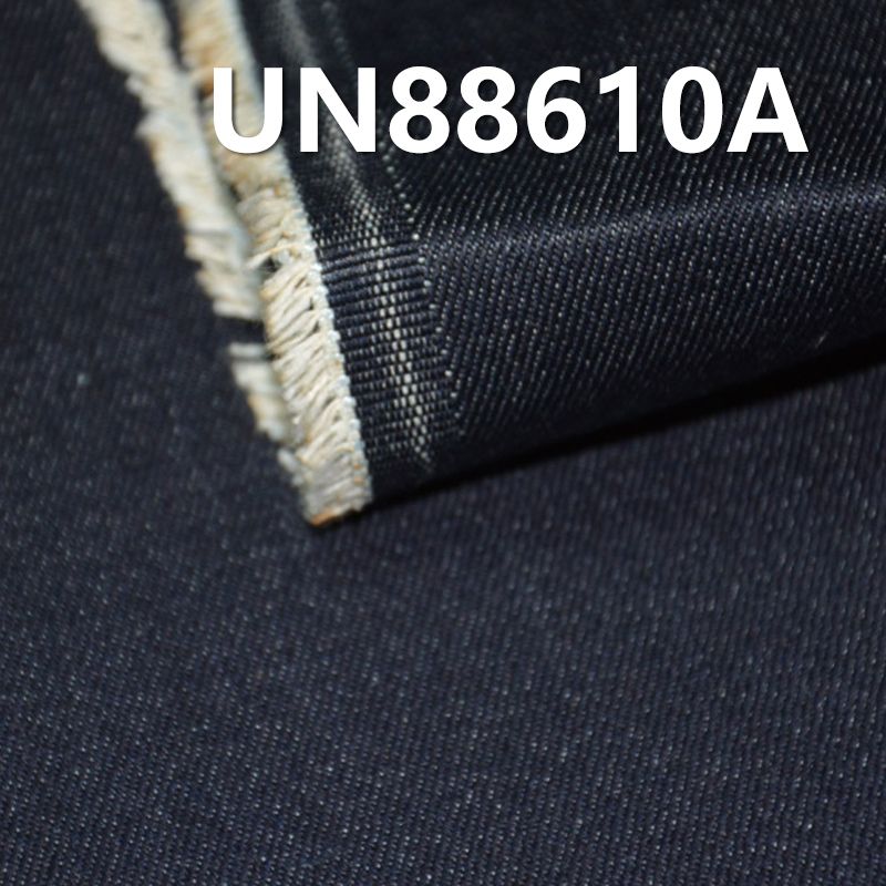 它是一款100%棉,重量为9.2安(oz)、幅宽为55/56" 的牛仔布料,主要工艺是“全棉竹节+丝光牛仔”,货号为 UN88610A;