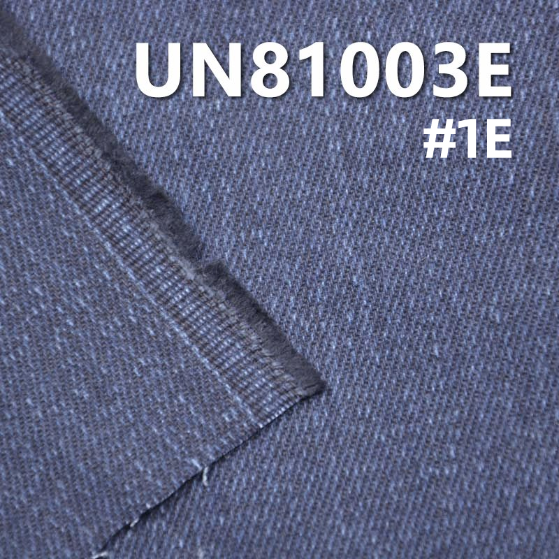它是一款100%棉,重量为13.5安士(oz)、幅宽为 57/58"的牛仔布料,主要工艺是“全棉+宽幅牛仔布”,货号为 UN81003E;