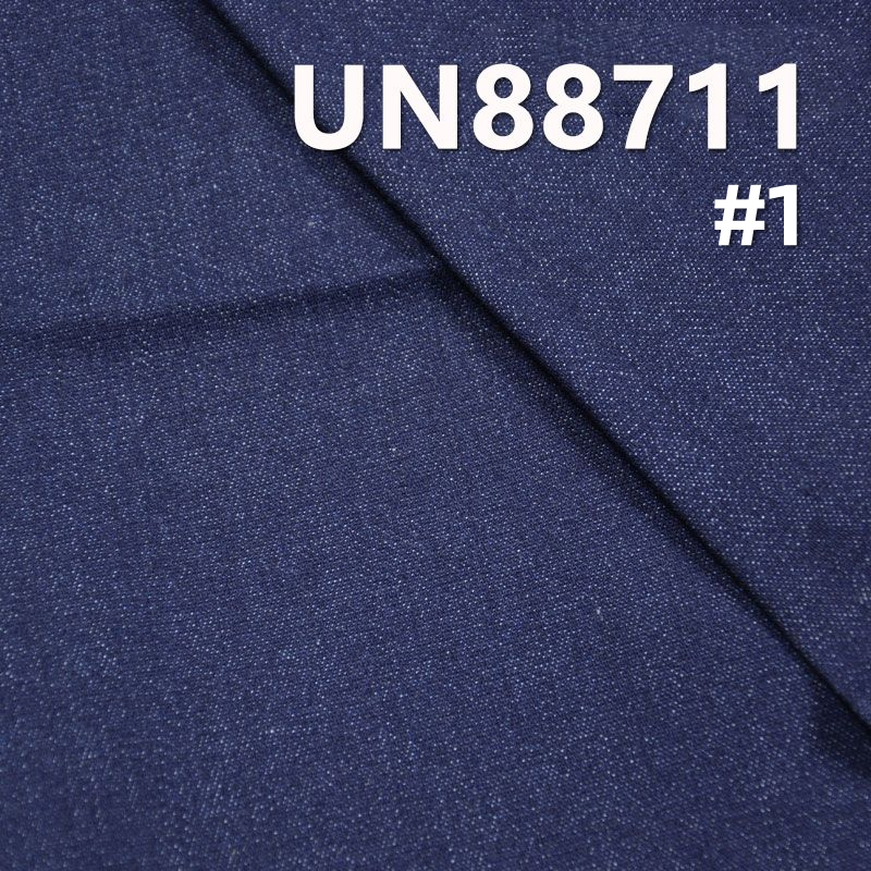 它是一款84.2%棉 5.8%涤纶 8.4%人棉 1.6%氨纶,重量为 10.1安士(oz)、幅宽为 53/55" 的牛仔布料,主要工艺是“三片右斜+弹力牛仔”,货号为 UN88711;