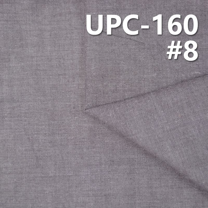 它是一款100%全棉,克重为121g/m²,幅宽为55/56"的染色面料,主要工艺是“全棉+色织”,货号为UPC-160;