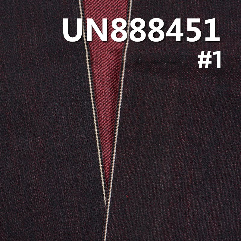它是一款62.5%棉37.5%涤纶,重量为12安士(oz)、幅宽为 33/34"的牛仔布料,主要工艺是“四片右斜+红边牛仔”,货号为 UN888451;