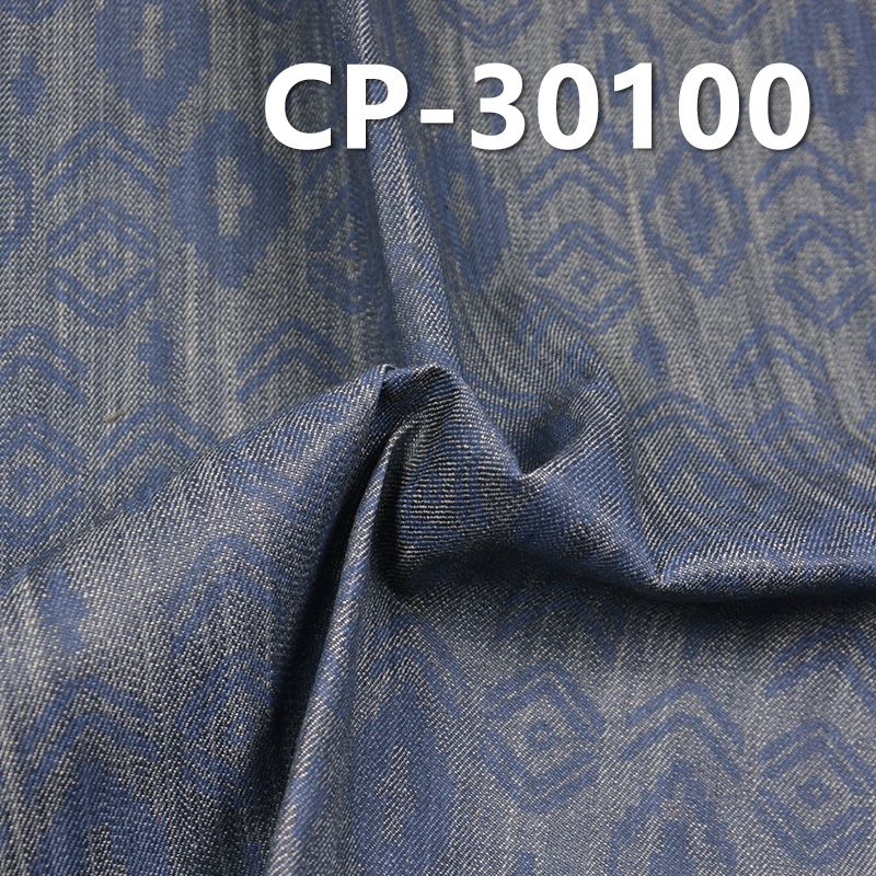 它是一款100%全棉,克重为6.5安士(oz),幅宽为58/59"的牛仔面料,主要工艺是“全棉牛仔+菱形印花”,货号为CP-30100;