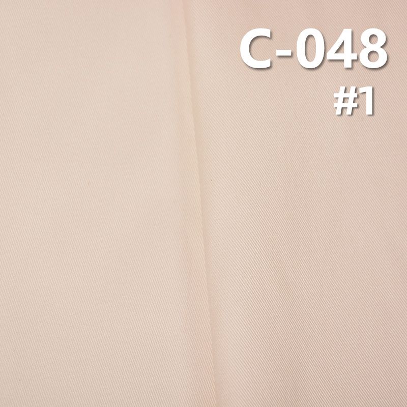它是一款100%全棉,克重为184g/m²,幅宽为57/58"的染色面料,主要工艺是“四片左斜+全棉”,货号为C-048;
