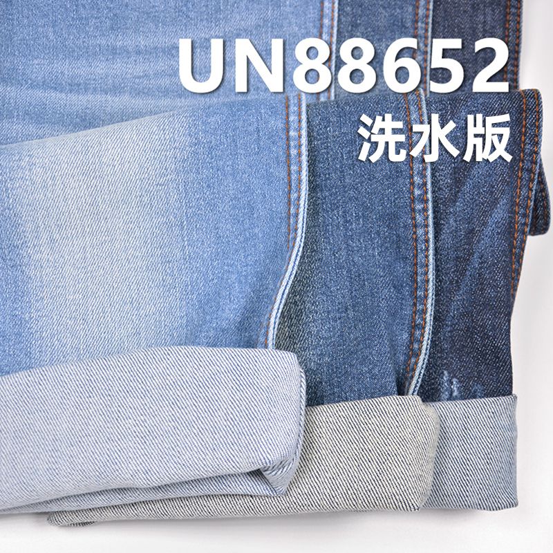 它是一款99%棉1%氨纶,重量为 11.8安士(oz)、幅宽为 蓝牛 52/54" (黑牛 59/60") 的牛仔布料,主要工艺是“四片右斜+弹力牛仔”,货号为 UN88652;