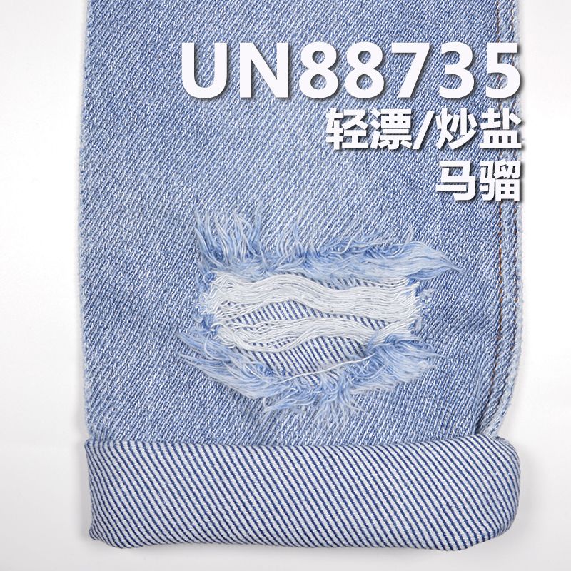 它是一款100%棉,重量为12.5安(oz)、幅宽为 62/63"的牛仔布料,主要工艺是“全棉+变化斜”,货号为 UN88735;