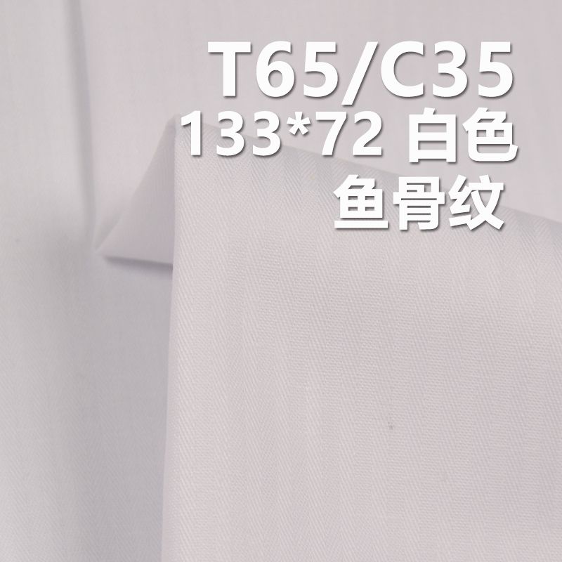 它是一款65%涤纶与35%棉,克重为110g/m²,幅宽为57/58"的梭织面料,主要工艺是"鱼骨纹织造(133*72)",货号为C-128;