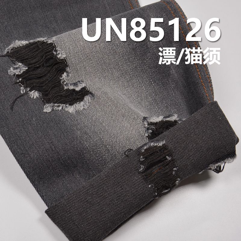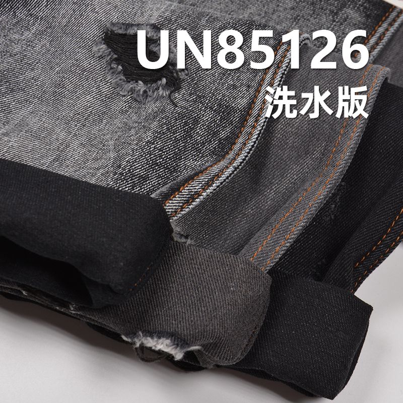 它是一款70%棉、6%粘胶与24%涤纶,克重为13.4安士(oz),幅宽为62/63"的牛仔面料,主要工艺是"四片右斜+黑面黑底",货号为UN85126;