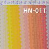 它是一款100%尼龙,重量为62g/m2,幅宽为 57/60" 的染色布料,主要工艺是“尼龙格仔+防静电+防泼水”,货号为 HN-011;
