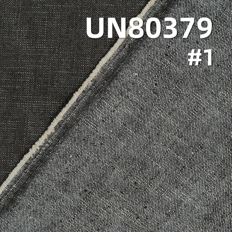 它是一款81%棉19%涤纶,重量为9.3安士(oz)、幅宽为 58/59"的牛仔布料,主要工艺是“三片右斜+牛仔”,货号为 UN80379;