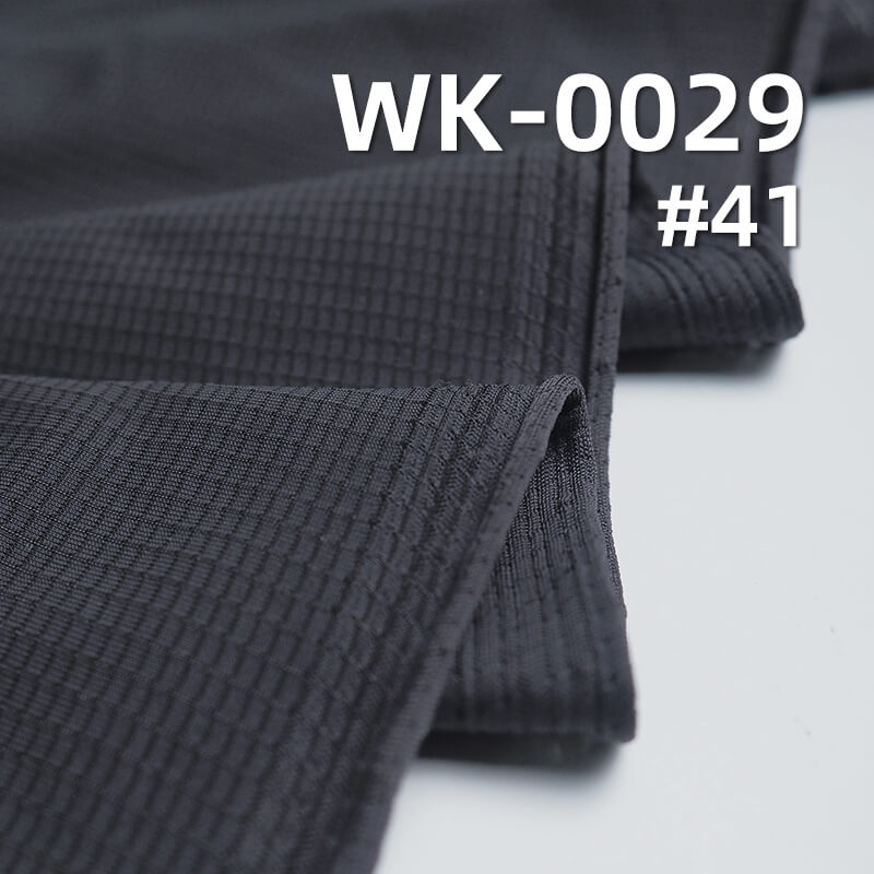 它是一款80%锦纶20%氨纶,重量为165g/m2,幅宽为 64/65”的针织布料,主要工艺是“锦纶弹力+提花精致格”,货号为 WK-0029;