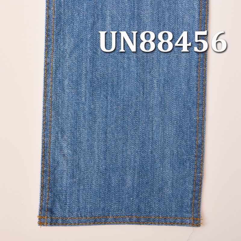 它是一款99%棉1%氨纶,重量为10.8oz,幅宽为52/54"的牛仔布料,主要工艺是“棉弹力牛仔+竹节”,货号为 UN88456;