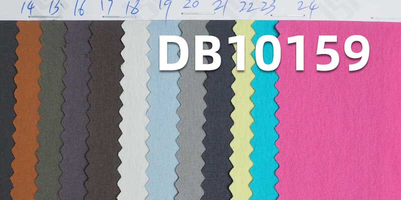 它是一款87%锦纶13%氨纶,重量为150g/m2,幅宽为 57/58" 的染色布料,主要工艺是“露露绉+防水+抗静电+凉感”,货号为DB10159;