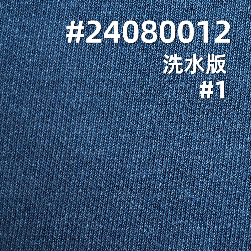 它是一款100%棉,重量为300g/m2,幅宽为74/75” 的针织牛仔布料,主要工艺是“全棉靛蓝可水洗+大卫衣 ”,货号为 #24080012;