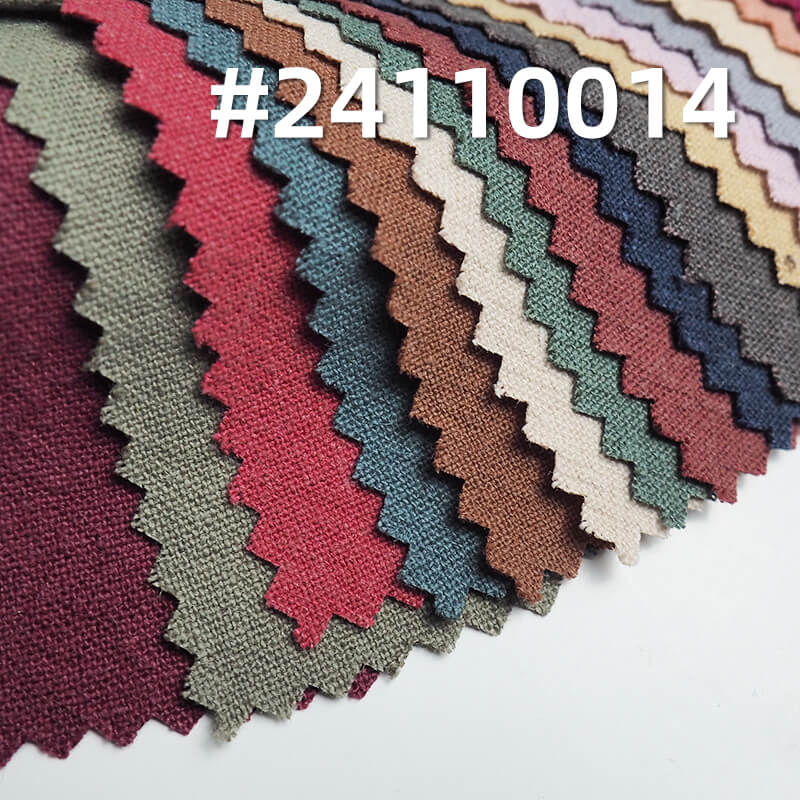 它是一款30%亚麻 70%棉,重量为 200g/m2 ,幅宽为 54/55" 的染色布料,主要工艺是“亚麻棉+砂洗”,货号为 #24110014;