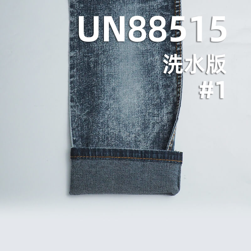 它是一款99%棉1%氨纶,重量为 10.7安(oz)、幅宽为 54/56" 的牛仔布料,主要工艺是“三片右斜+弹力牛仔”,货号为 UN88515;