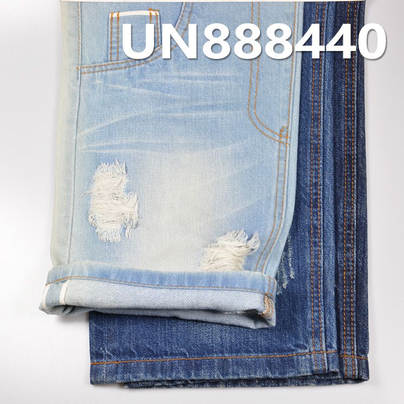 它是一款100%棉,重量为12oz、幅宽为32/33"的牛仔布料,主要工艺是“红边牛仔+竹节”,货号为UN888440;